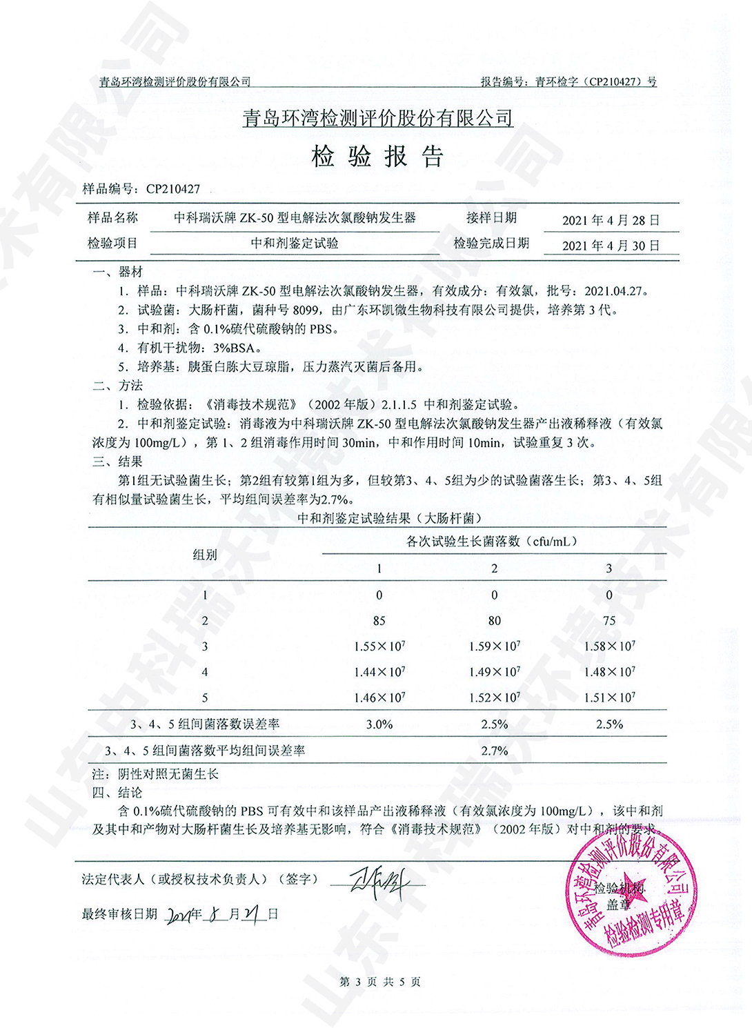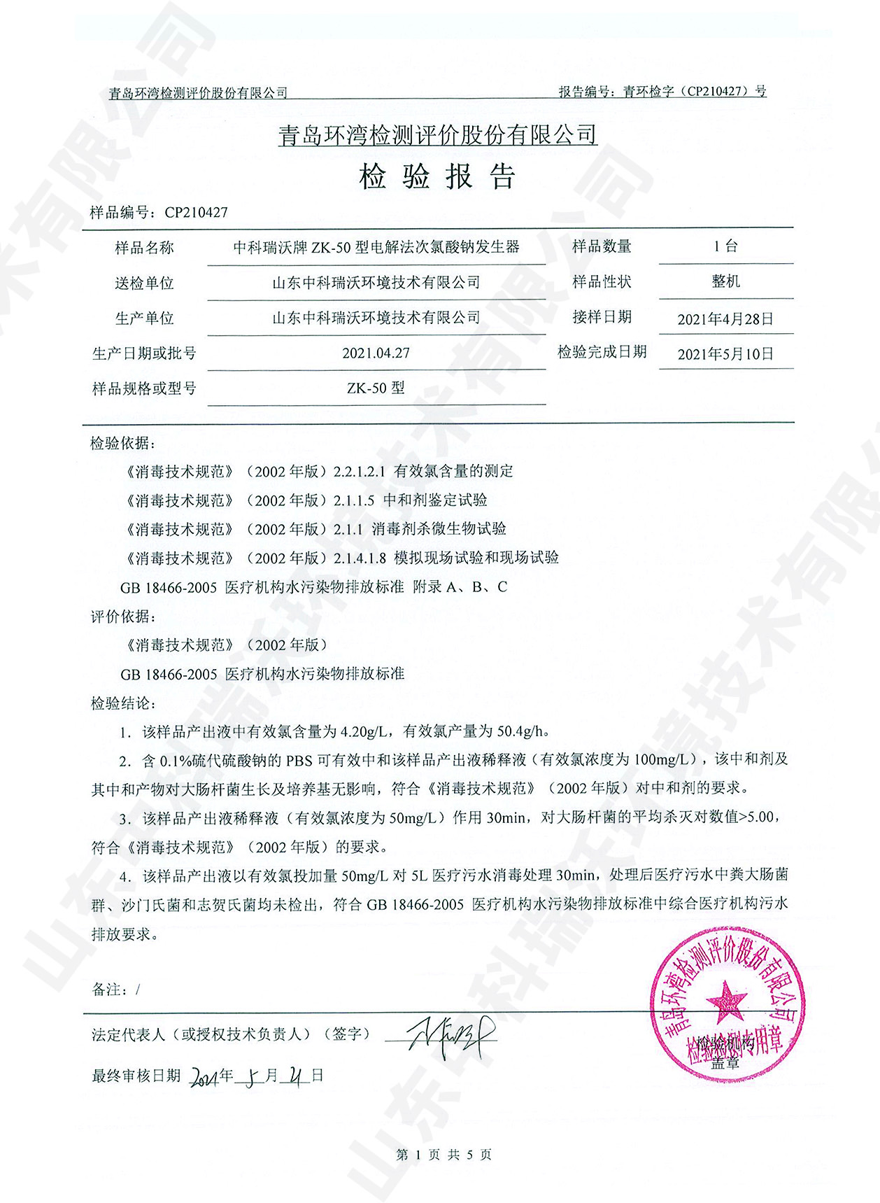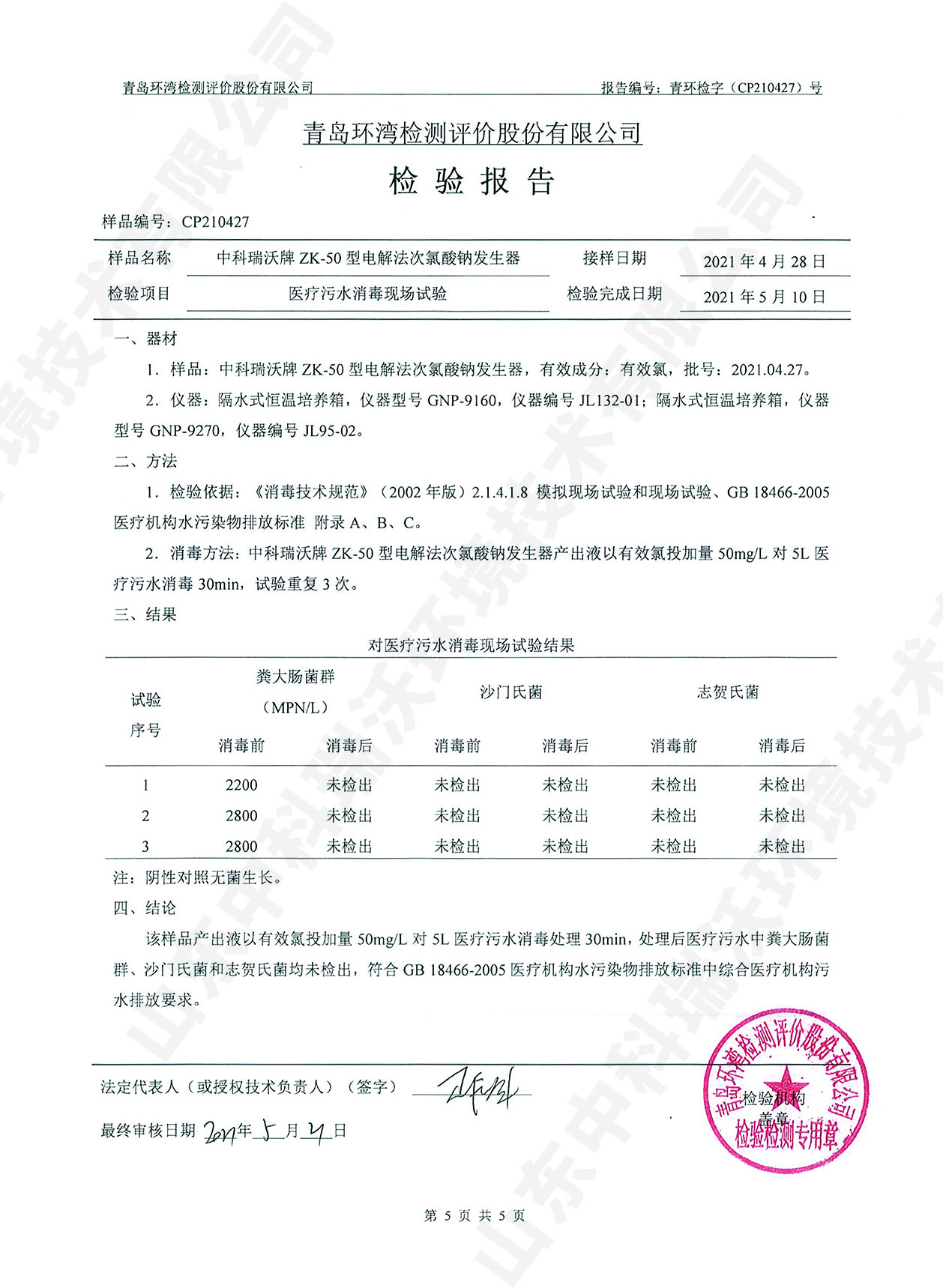 醫(yī)療污水處理設(shè)備檢測報告~次氯酸鈉消毒