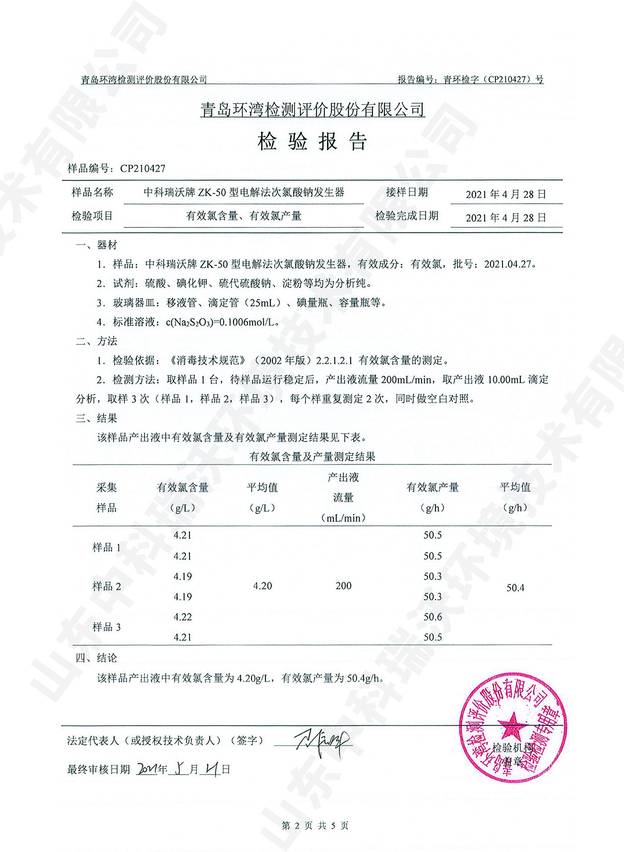 飲水消毒設(shè)備檢測報告~二氧化氯消毒