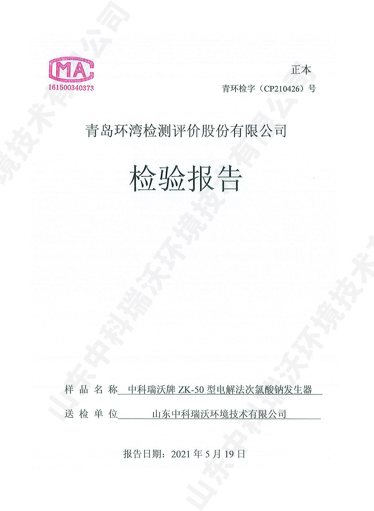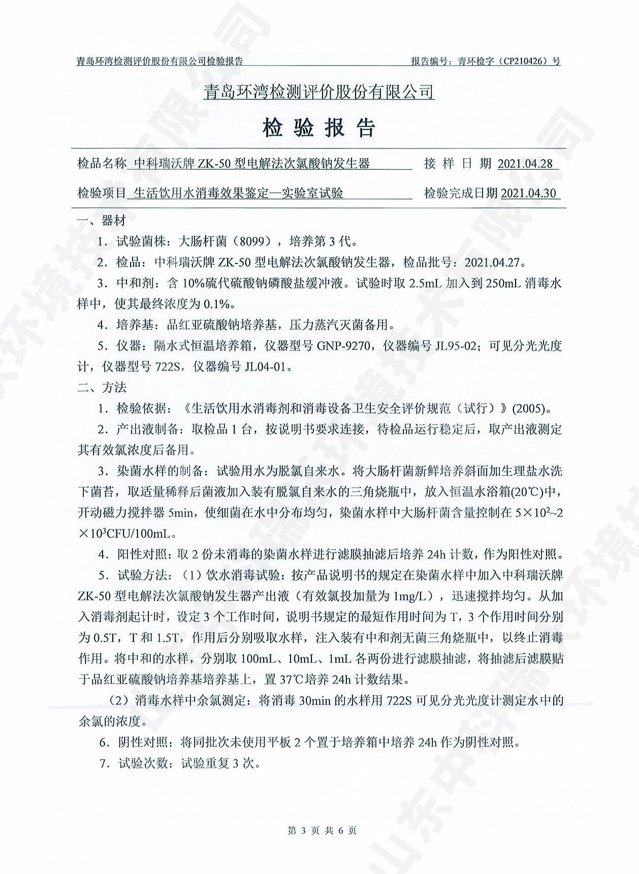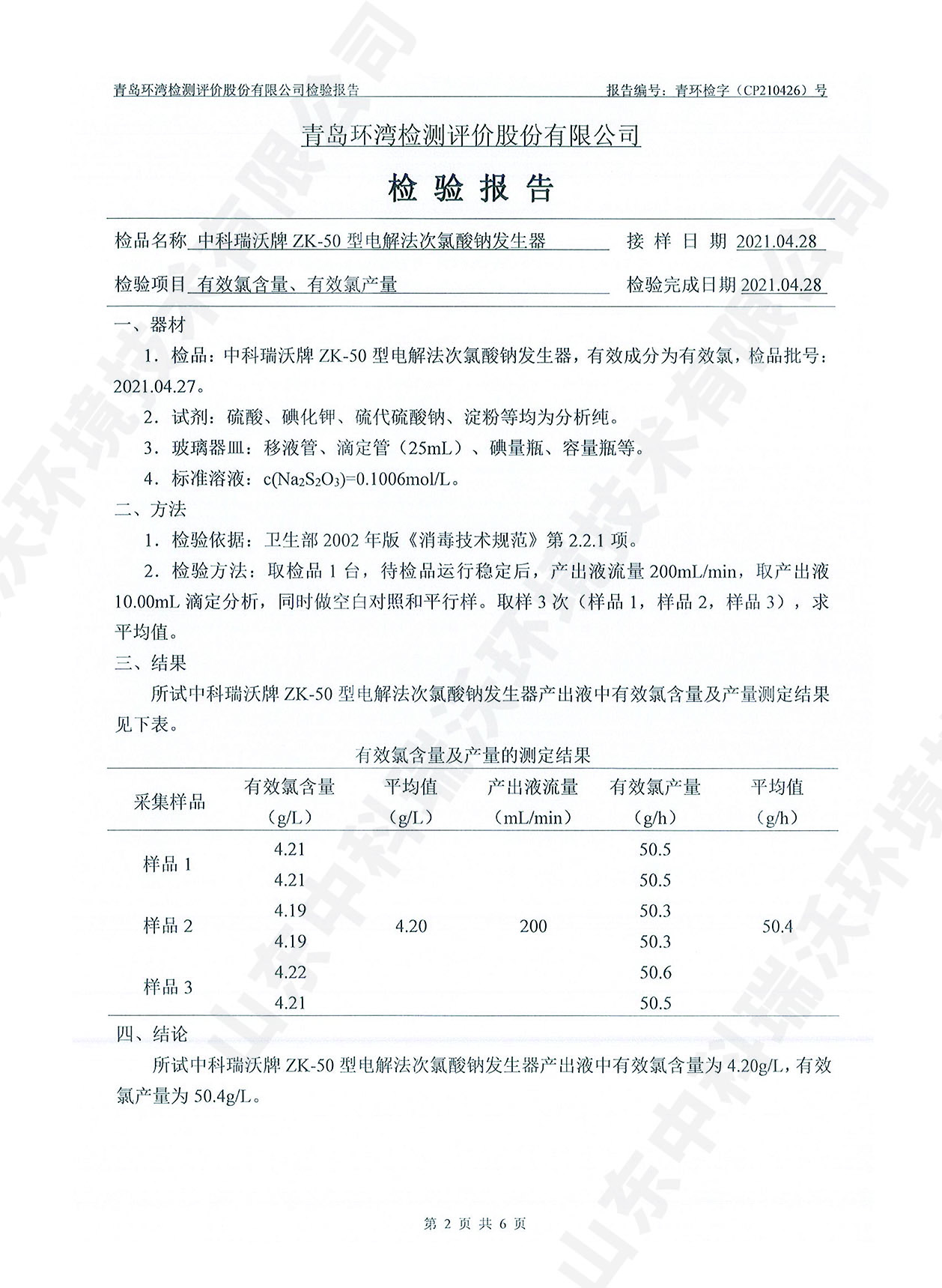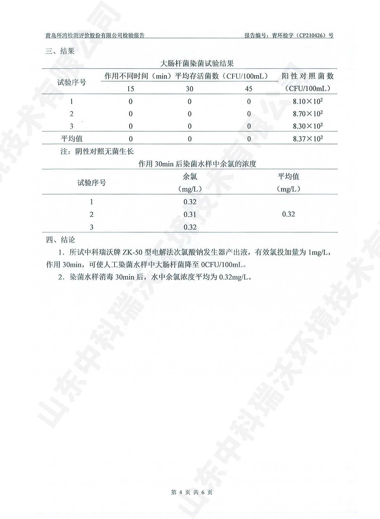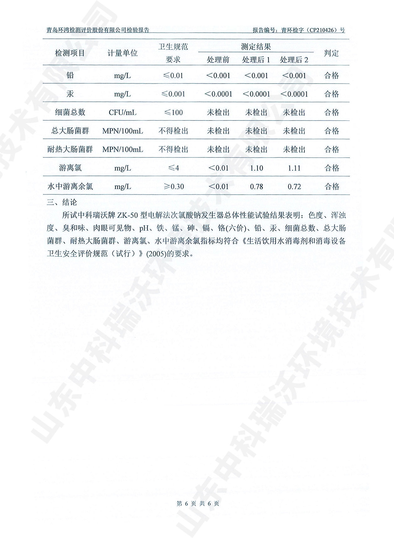 飲水消毒設(shè)備檢測報告~次氯酸鈉消毒